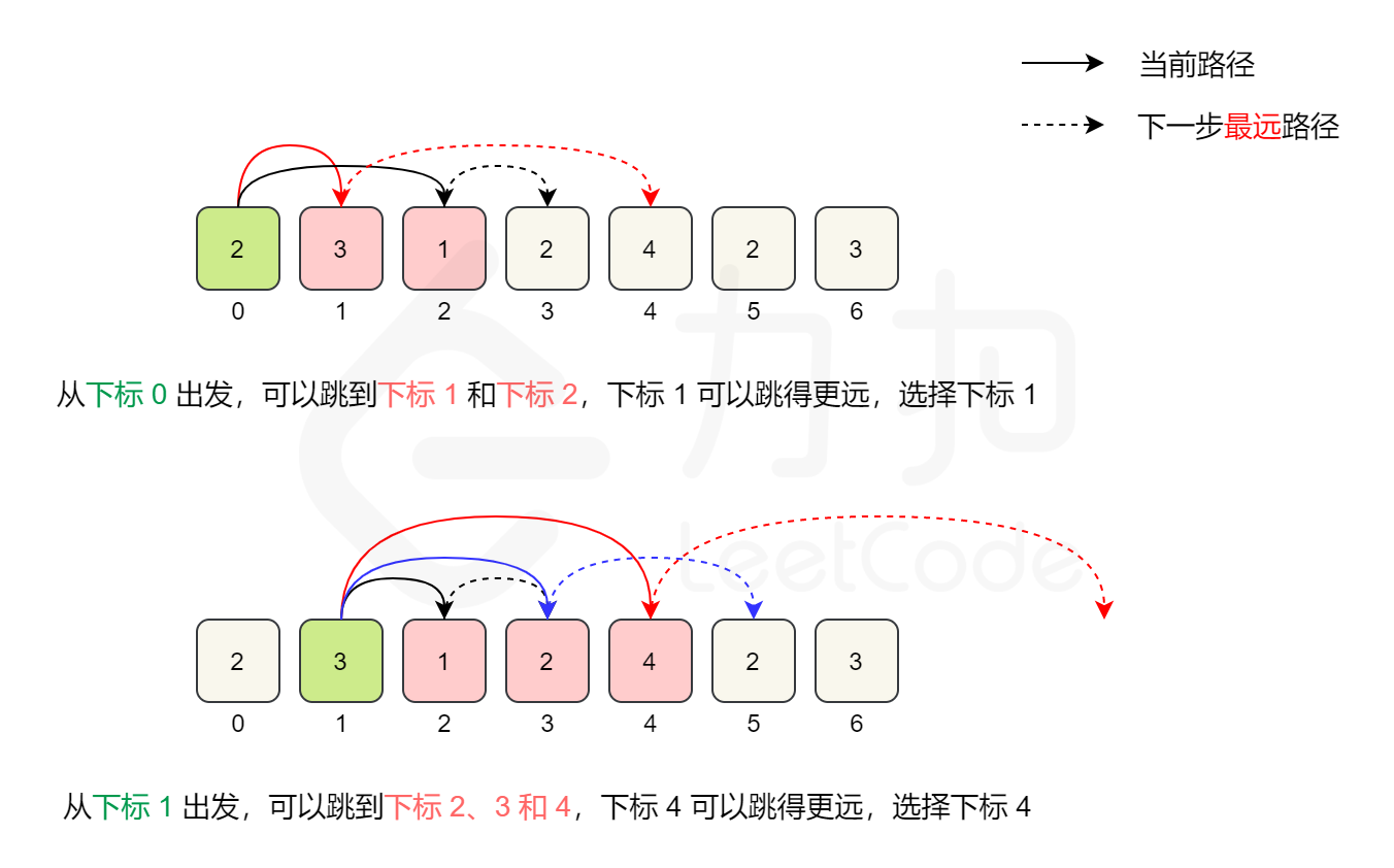 1 | // 对于当前index, 每次在能跳到的范围内 |
