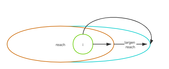 数组的第一个元素的值为 reach, 从数组的第一个元素开始, 每次计算在reach范围内的元素们所能到达的最远距离, 是否超过reach, 如果超过了, 就更新reach值为较大值. 直至reach的值超过lastIndex 返回 true.